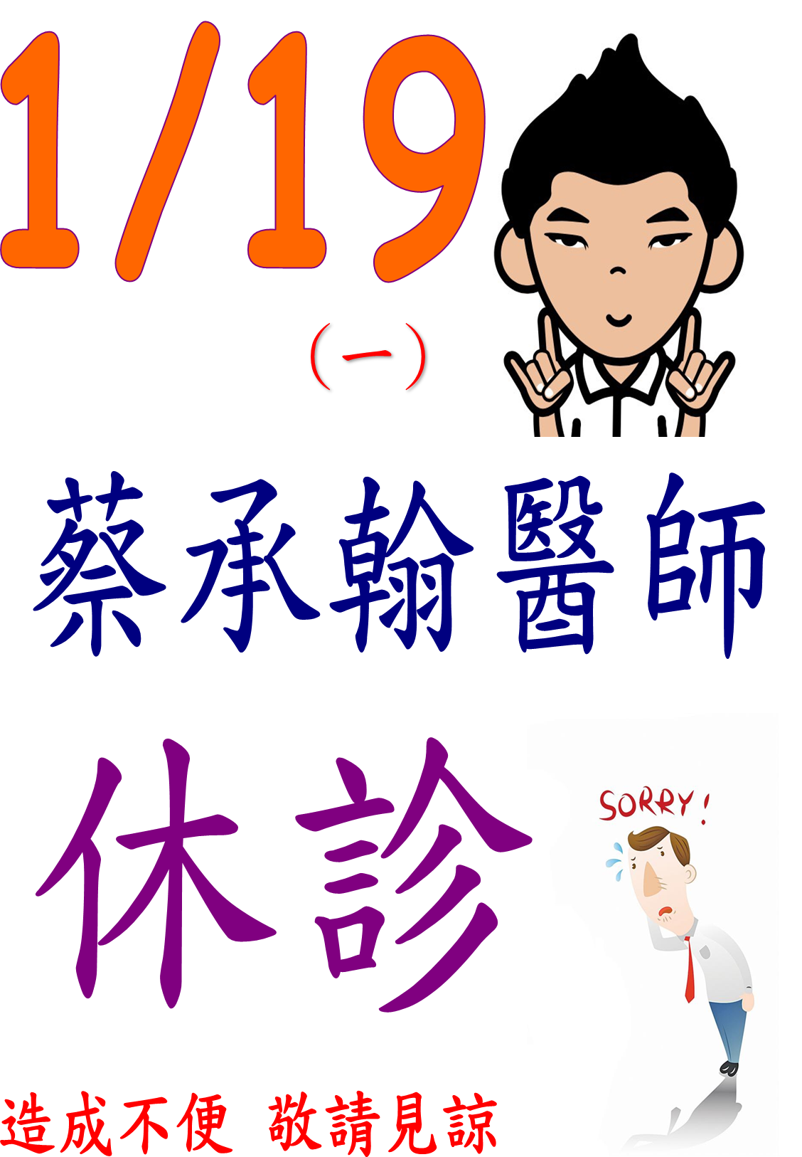 115年1月蔡医师休假公告