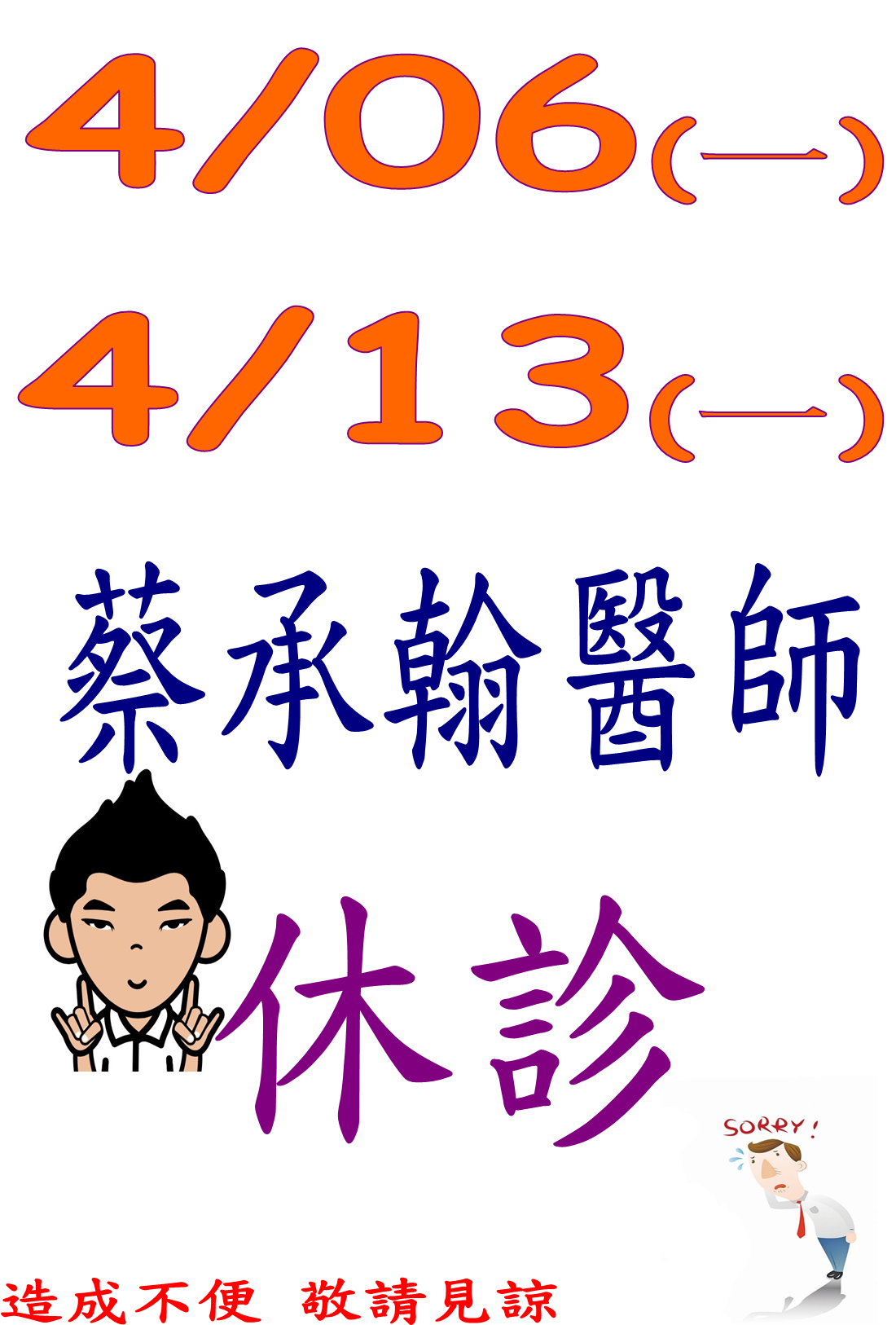 115年4月蔡醫師休假